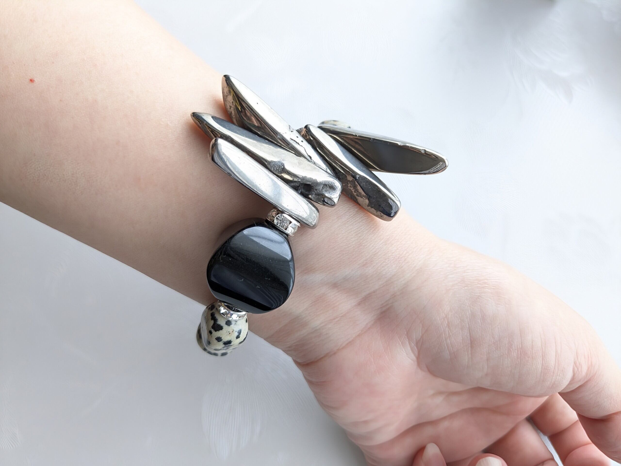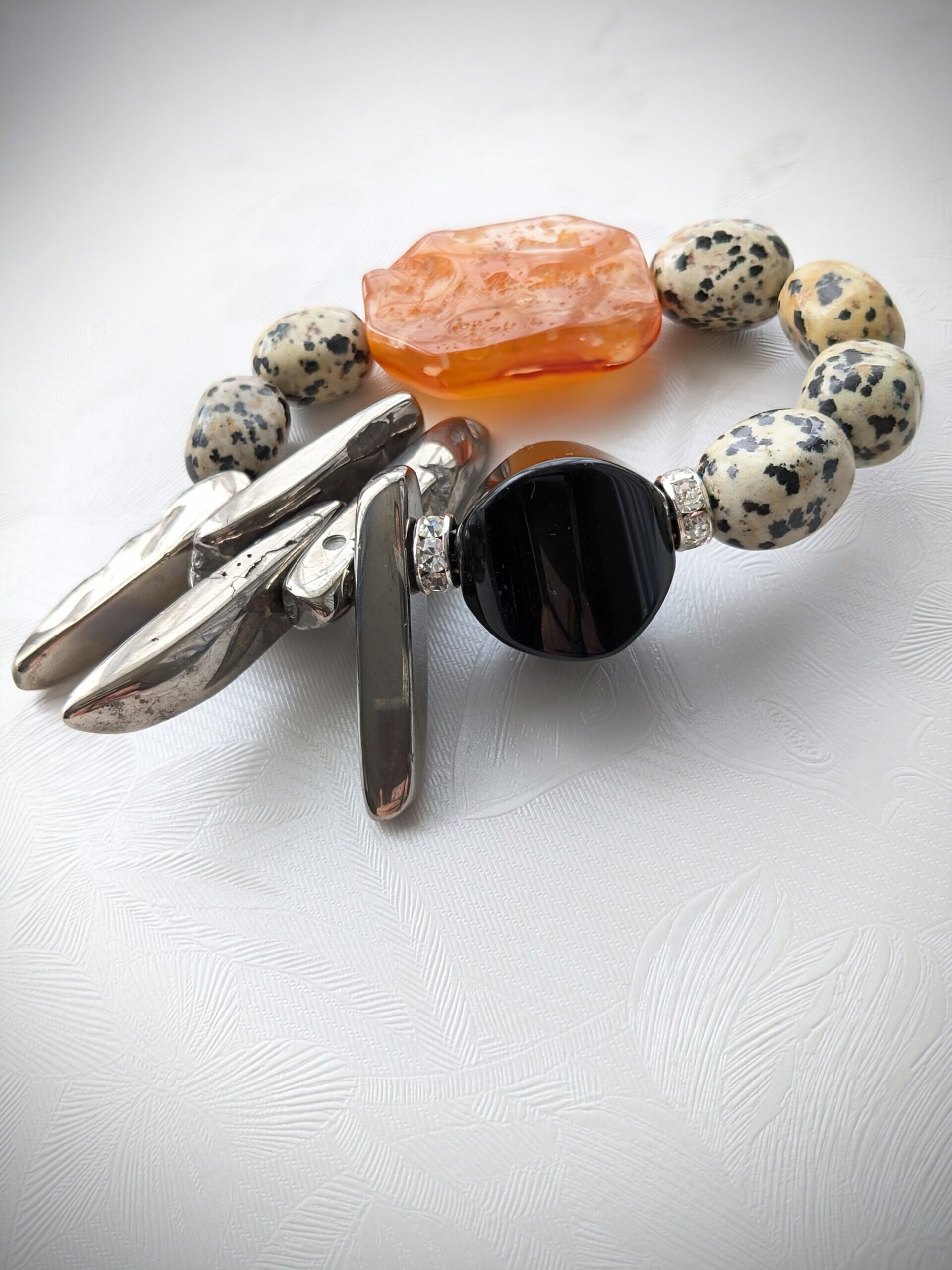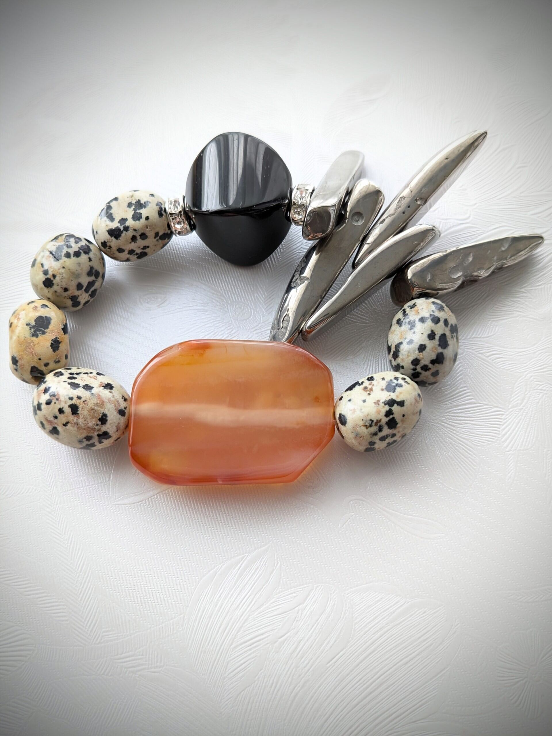 ダルメシアンジャスパーと、シルバーカラーリングアゲートの面白い組み合わせにもご注目ください♡