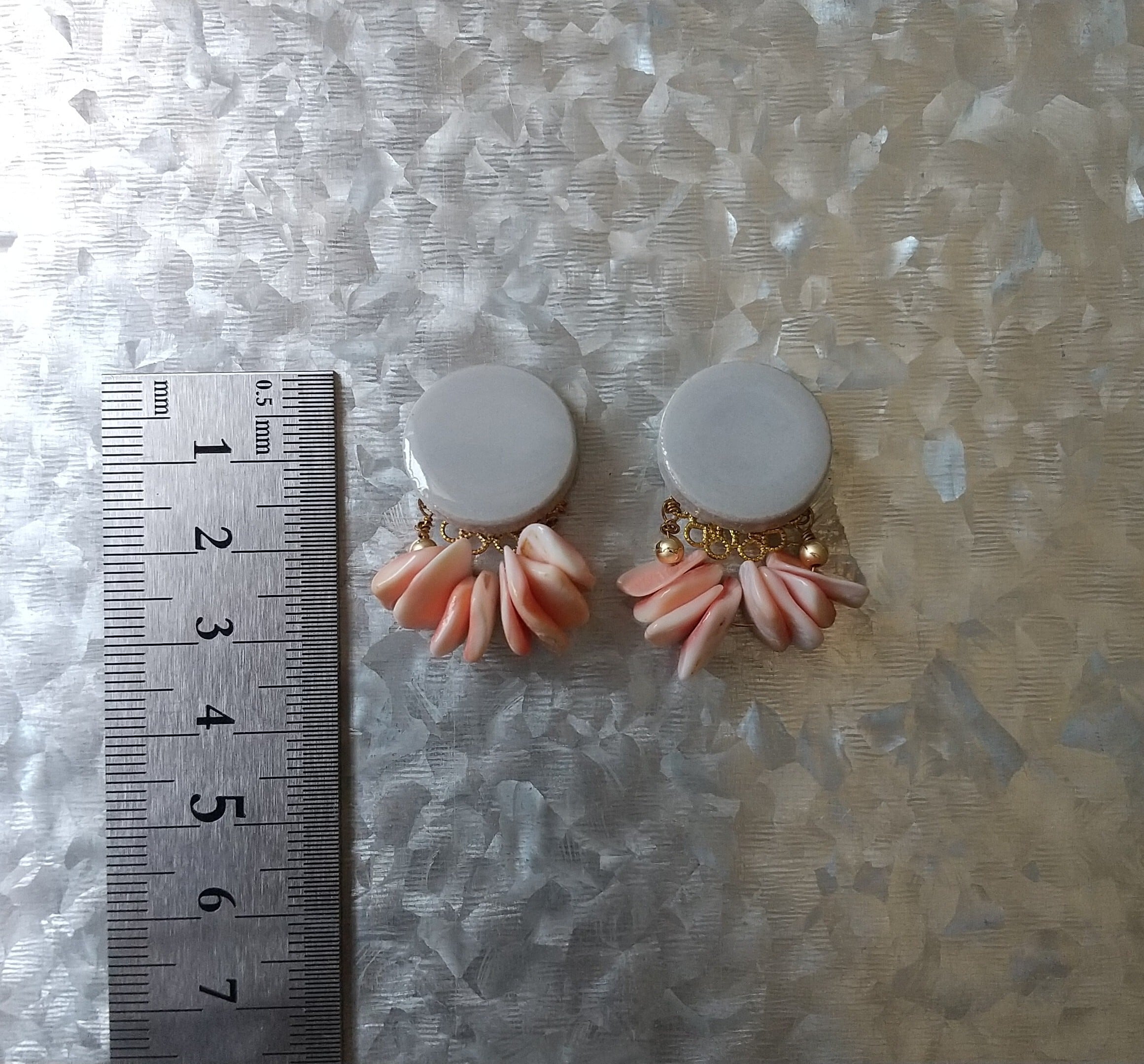 タイルの重みがあるため、あえてイヤリングでの作りになりました。