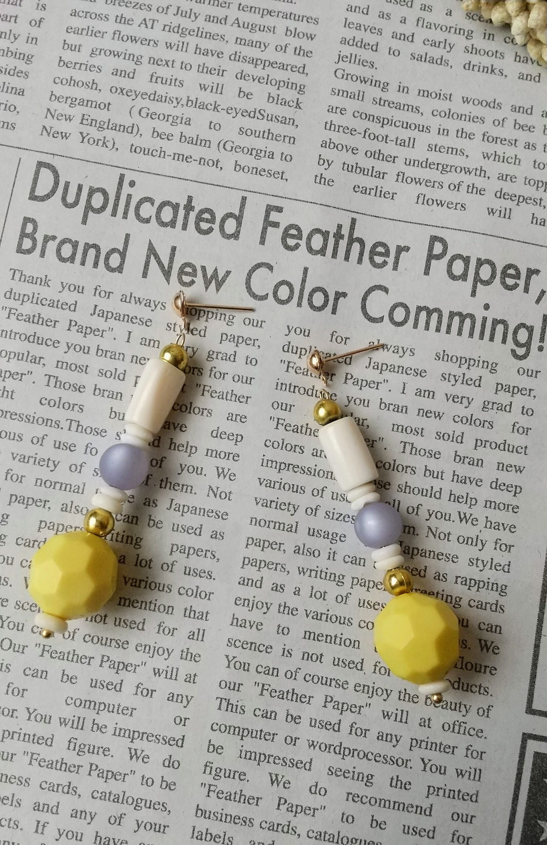 綺麗なイエローと磨りガラスのようなブルーのビーズの色合わせに拘りました。