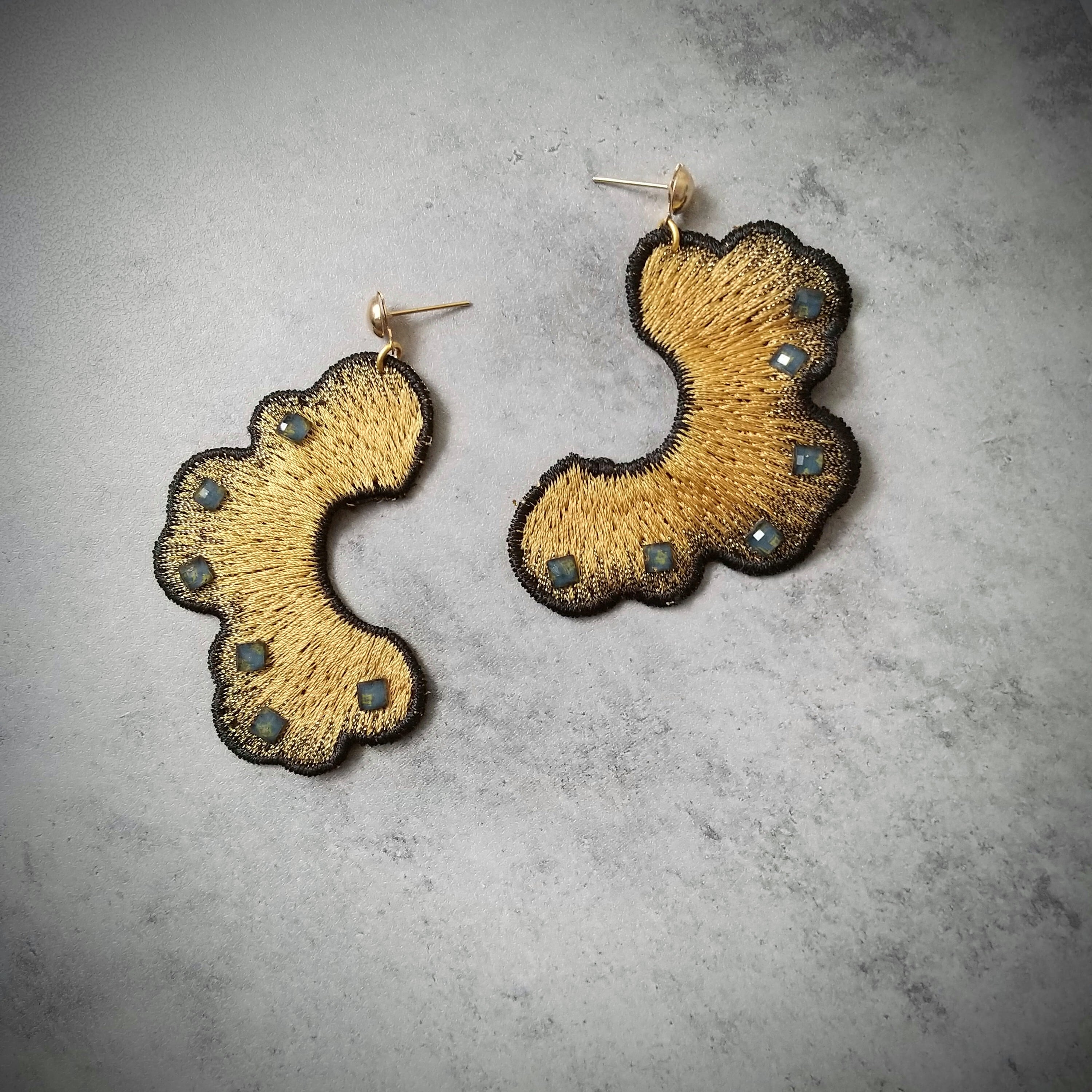 ブルーのカボションの配置と数を変え、少し違った表情を持つ二種類の展開になりました。(もう一つのデザインは、“pattern①”として別に出品しています。是非見比べてくださいませ。)